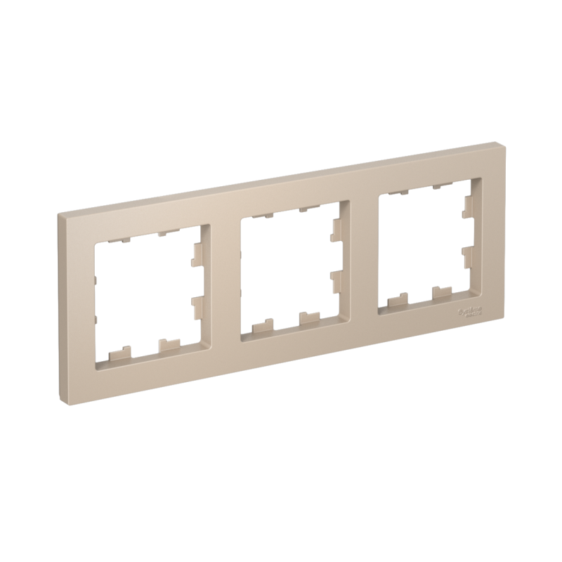 Рамка Systeme Electric (ранее Schneider Electric) серии AtlasDesign в цвете песочный трёхместная. Устанавливается в вертикальном и горизонтальном положениях. Лицевые детали из качественного ABS-пластика, устойчивого к царапинам и УФ-излучению. Позволяет гармонично вписать электроустановочное изделие в интерьер помещения.