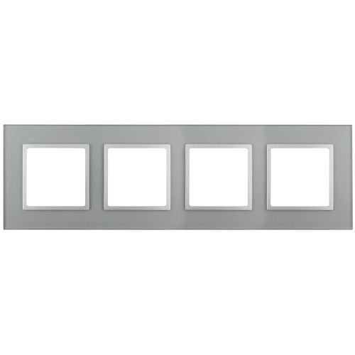 Рамка для выключателей и розеток 4-постовая серии Эра Elegance цвет алюминий 14-5104-03. Сделана из стекла. Используется только с механизмами серии Эра Elegance.