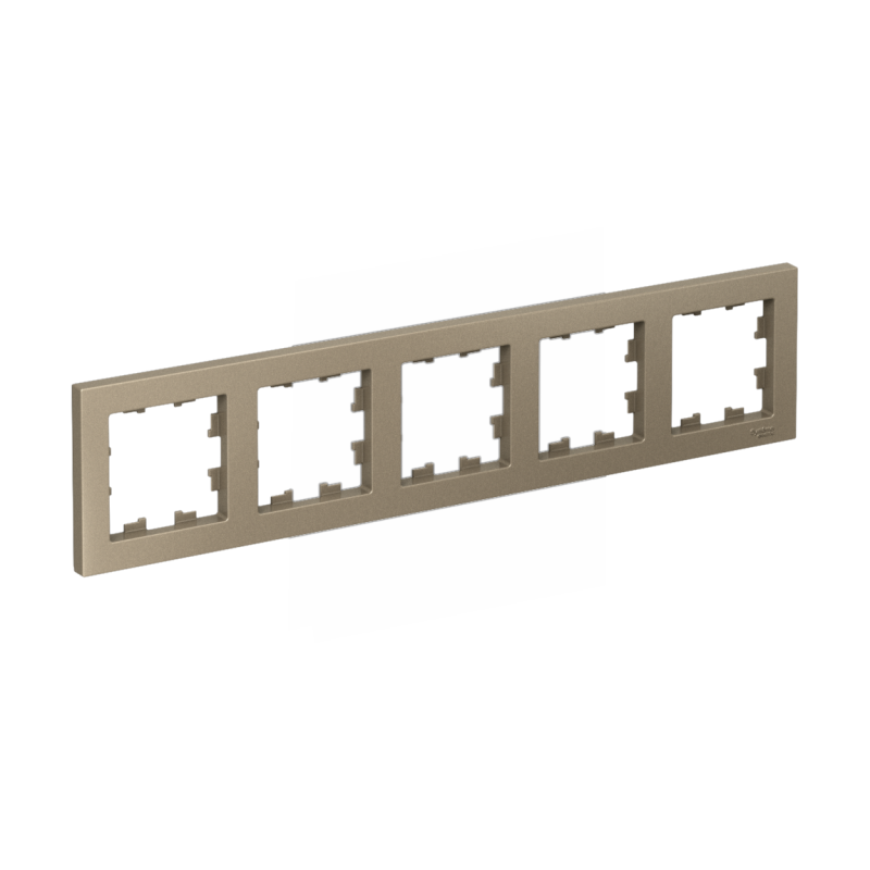 Рамка Systeme Electric (ранее Schneider Electric) серии AtlasDesign в цвете шампань пятиместная. Устанавливается в вертикальном и горизонтальном положениях. Лицевые детали из качественного ABS-пластика, устойчивого к царапинам и УФ-излучению. Позволяет гармонично вписать электроустановочное изделие в интерьер помещения.