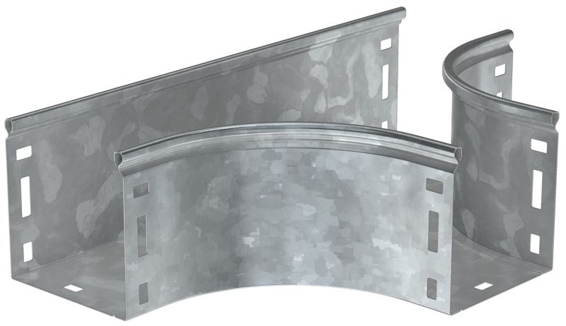Разветвитель Т-образный плавный предназначен для организации Т-образного ответвления кабельной трассы. Крышка аксессуара в комплект не входит. Аксессуар изготовлен из стали с цинковым покрытием, нанесенным погружением изделий в расплав цинка (защитный слой цинка не менее 55 мкм).