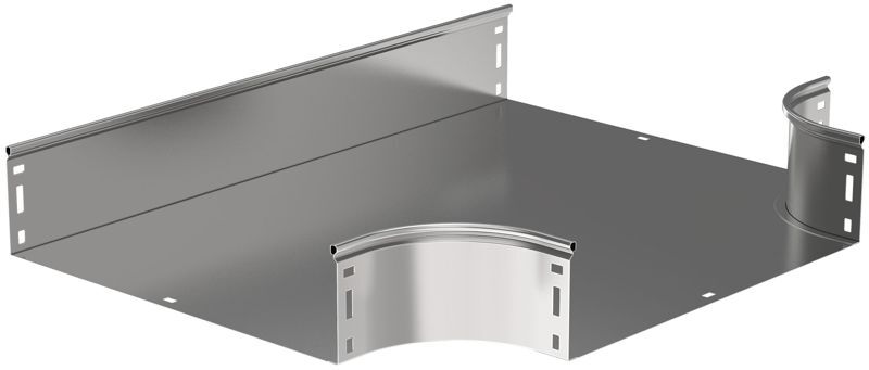 Разветвитель Т-образный плавный предназначен для организации Т-образного ответвления кабельной трассы. Крышка аксессуара в комплект не входит. Аксессуар изготовлен из стали горячего цинкования методом Сендзимира (защитный слой цинка не менее 10 мкм).