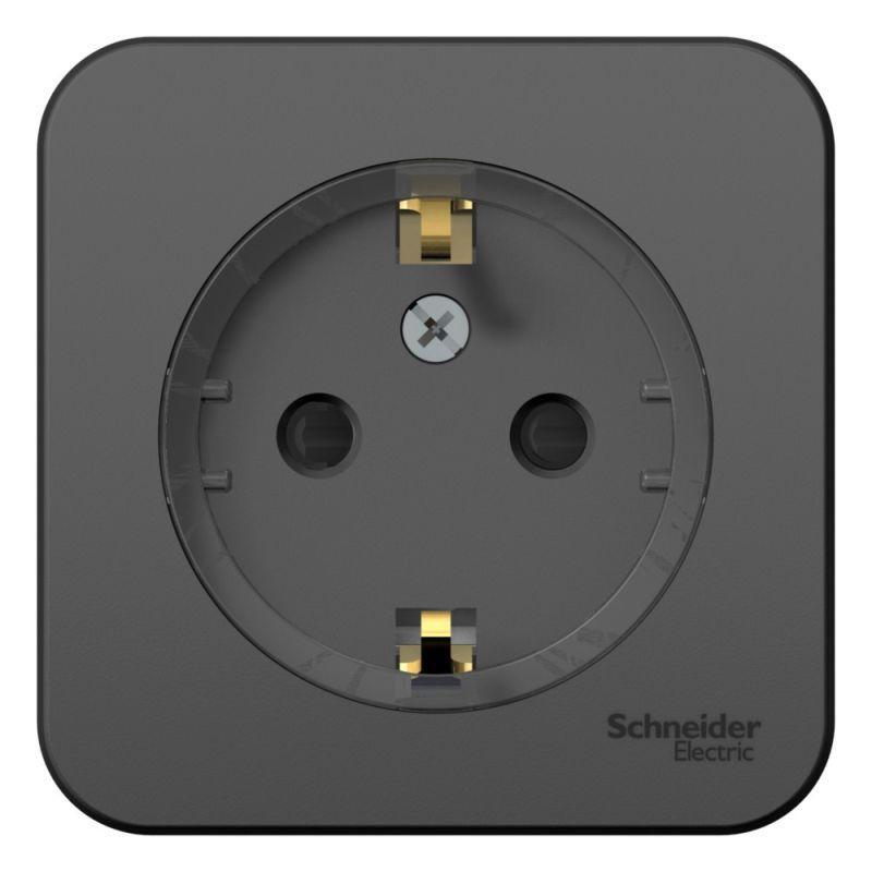 Розетка 1-м ОП Blanca 16А IP20 250В с заземл. защ. шторки с изолир. пластиной (компакт) антрацит SE BLNRA111116