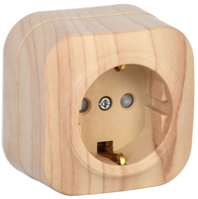 Розетка 1-м ОП GLORY РСш20-3-ХС 16А с заземл. защ. шторки сосна IEK ERH14-K34-16
