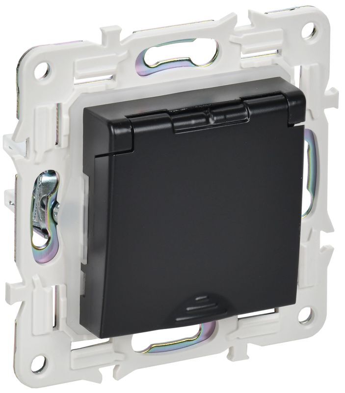 Розетка 1-м SKANDY 16А IP44 с заземл. защ. шторки с крышкой SK-R11Bl черн. IEK SK-R16-16-44-K02