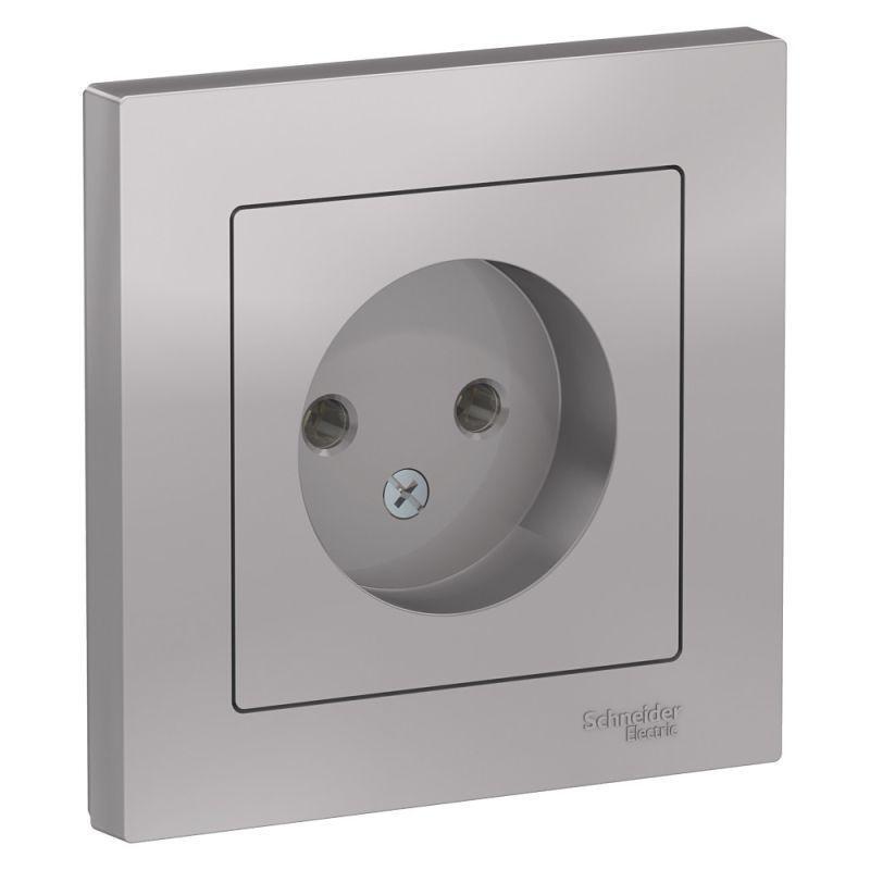 Розетка 1-м СП AtlasDesign 16А IP20 без заземл. в сборе алюм. SE ATN000340
