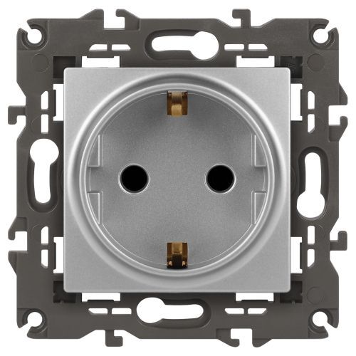 Розетка 1-м СП Эра Elegance 14-2102-03 16А IP20 16AX 250В 2P+E Schuko защ. шторки алюм. Эра Б0034274
