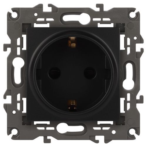 Розетка 1-м СП Эра Elegance 14-2102-05 16А IP20 16AX 250В 2P+E Schuko защ. шторки антрацит Эра Б0034276