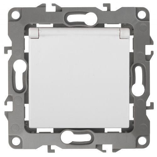 Розетка 2P+E Schuko со шторками с крышкой, 16А-250В, б.л., Эра12, белый