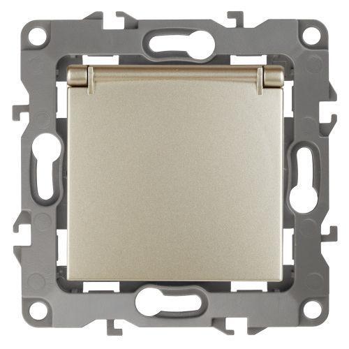 Розетка 1-м СП Эра12 12-2103-04 16А IP20 16AX 250В 2P+E Schuko защ. шторки с крышкой механизм шампань Эра Б0014696