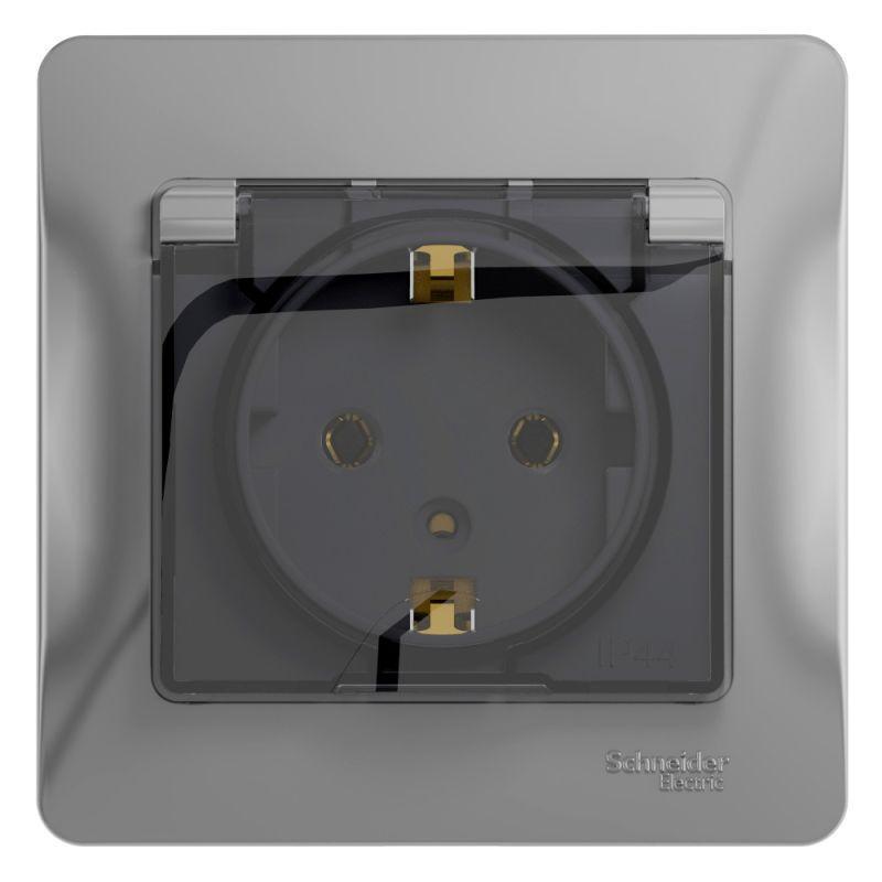 Розетка Systeme Electric (ранее Schneider Electric) серии Glossa (в сборе, цвет алюминий) одинарная с заземлением, шторками и крышкой подходит для сетей 250 В, на ток 16 А. Заземляющий контакт обеспечивает дополнительную защиту от удара электрическим током. При наличии заземления электрический потенциал уходит в землю, защищая человека. Выполнен из материала PС+ASA, стойкого к УФ-излучению и появлению царапин. Эргономичные клеммы розеток расположены в один ряд.