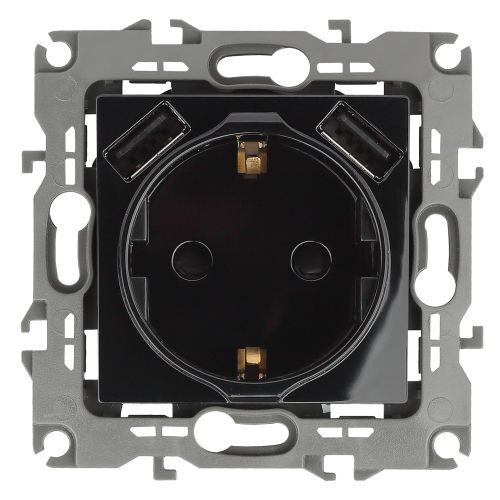 Розетка 16А 250В 2P+E с 2хUSB 5В-3А защ. шторки Эра12 черн. 12-4109-06 ЭРА Б0047845