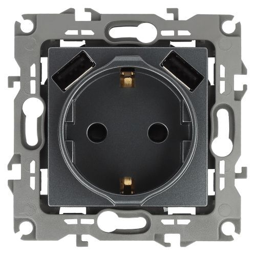 Розетка 16А 250В 2P+E с 2хUSB 5В-3А защ. шторки Эра12 графит 12-4109-12 ЭРА Б0047846