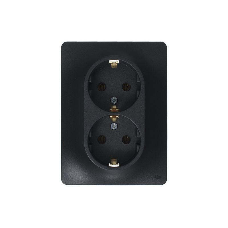 Розетка двойная Systeme Electric (ранее Schneider Electric) серии Glossa (в сборе, цвет антрацит) с заземлением, без шторок подходит для сетей 250 В, на ток 16 А. Заземляющий контакт обеспечивает дополнительную защиту от удара электрическим током. При наличии заземления электрический потенциал уходит в землю, защищая человека. Выполнен из материала PС+ASA, стойкого к УФ-излучению и появлению царапин. Двойная розетка позволяет подключить два устройства в одном месте.