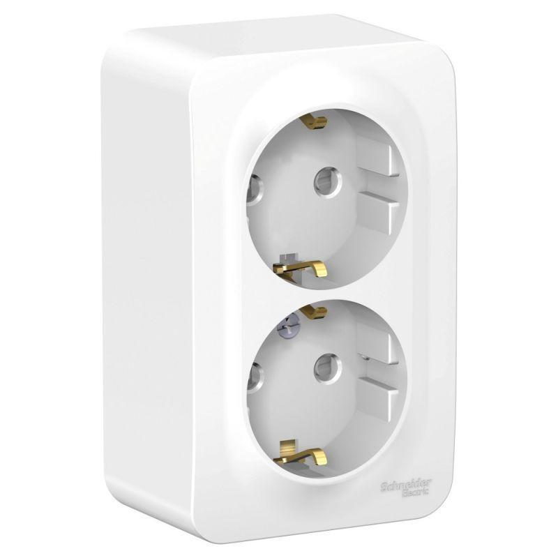 Розетка Systeme Electric (ранее Schneider Electric) BLANCA (белый, открытой установки) двухместная, с заземлением, шторками и изолирующей пластиной предназначена для сетей до 250В, на ток до 16А. Двухместная розетка позволяет подключить два устройства в одном месте. Шторки и заземление обеспечивают дополнительную безопасность при косвенном прикосновении.