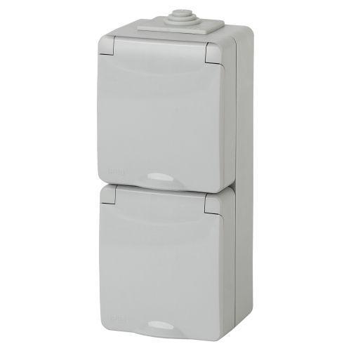 Розетка 2-м ОП Эра Эксперт 11-2608-03 16А IP65 верт. 250В 2х2P+E защ. шторки сер. Эра Б0036003
