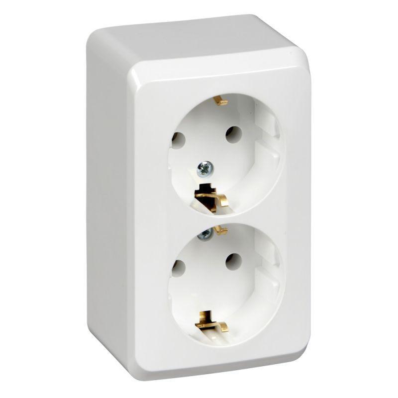 Розетка Systeme Electric (ранее Schneider Electric) ЭТЮД (белый, открытой установки) двухместная с заземлением, без шторок предназначена для применения в сетях до 250В, на ток до 16А. Двухместная розетка позволяет подключить два устройства в одном месте. Заземление обеспечивает безопасность при косвенном прикосновении. Она проста в установке и удобна в применении. Сделано в России.