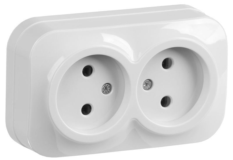 Розетка 2-м ОП GLORY РС22-2-ХБ 10А без заземл. бел. IEK ERH20-K01-10