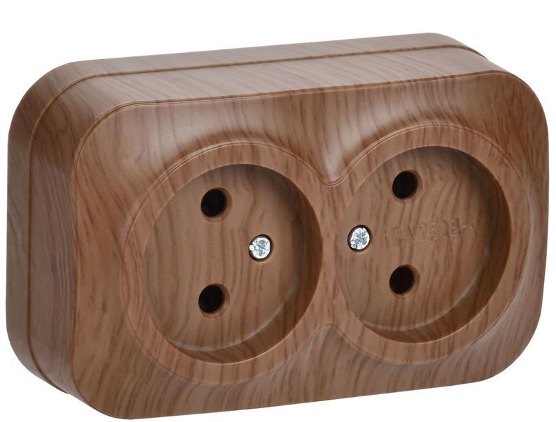 Розетка 2-м ОП GLORY РС22-2-ХД 10А без заземл. дуб IEK ERH20-K24-10