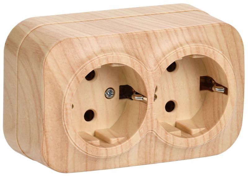 Розетка 2-м ОП GLORY РС22-3-ХС 16А с заземл. сосна IEK ERH21-K34-16