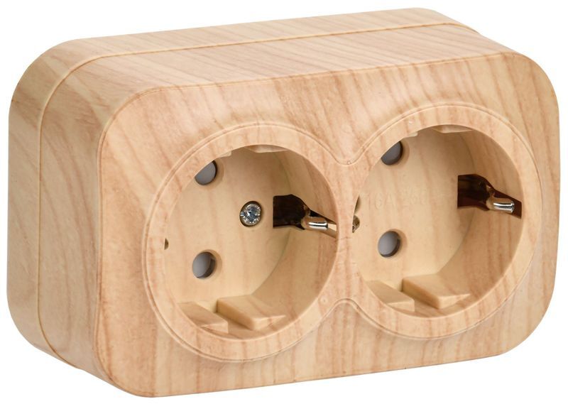 Розетка 2-м ОП GLORY РСш22-3-ХС 16А с заземл. защ. шторки сосна IEK ERH24-K34-16