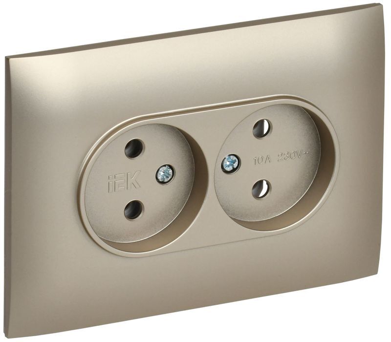 Розетка 2-м SKANDY 10А без заземл. без защ. шторок в сборе SK-R10Sh шампань IEK SK-R20-10-K37-F