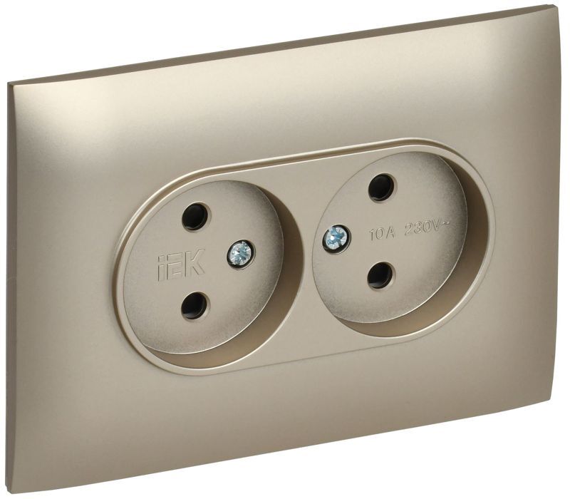Розетка 2-м SKANDY 10А без заземл. защ. шторки в сборе SK-R09Sh шампань IEK SK-R23-10-K37-F