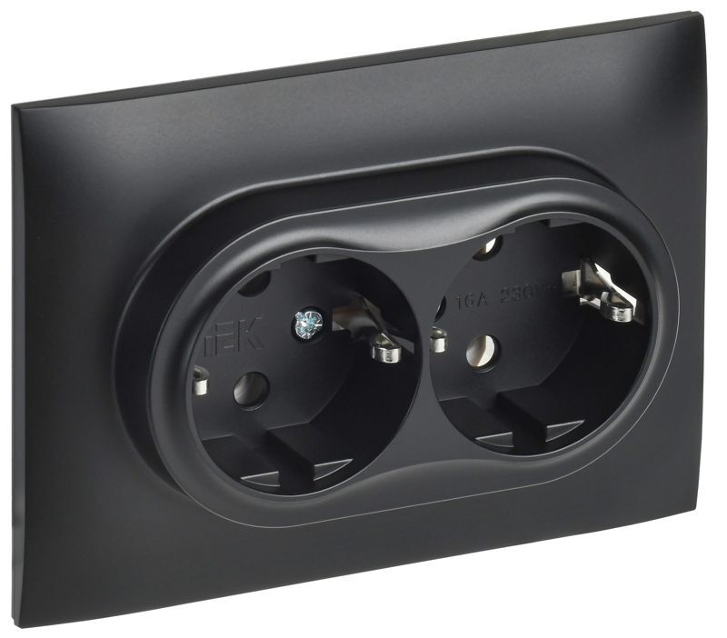 Розетка 2-м SKANDY 16А с заземл. без защ. шторок в сборе SK-R08Bl черн. IEK SK-R21-16-K02-F