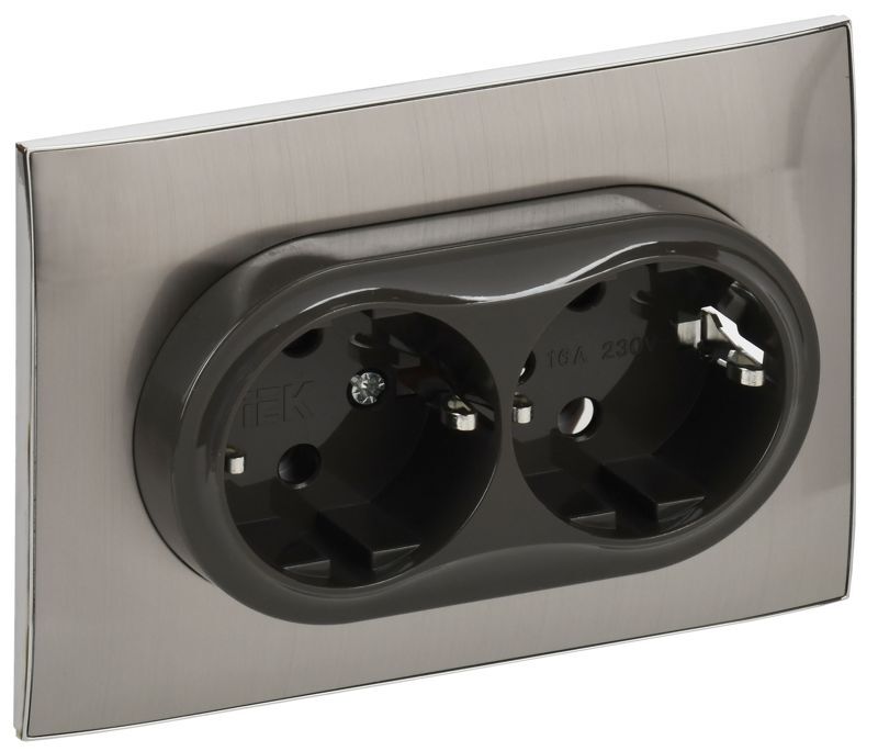 Розетка 2-м SKANDY 16А с заземл. без защ. шторок в сборе SK-R08N никель IEK SK-R21-16-K50-F