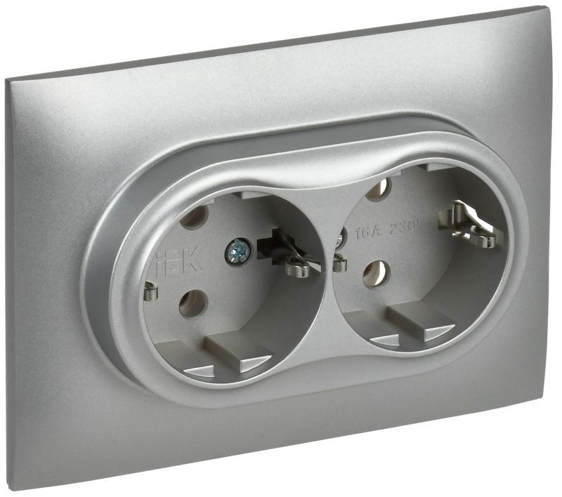 Розетка 2-м SKANDY 16А с заземл. без защ. шторок в сборе SK-R08S серебр. IEK SK-R21-16-K23-F