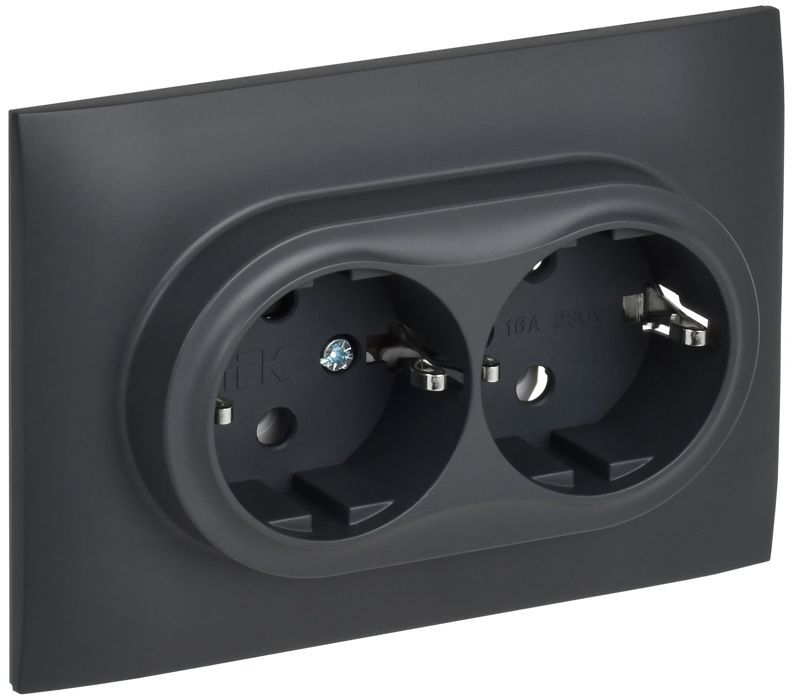 Розетка 2-м SKANDY 16А с заземл. без защ. шторок в сборе SK-R08T титан IEK SK-R21-16-K48-F
