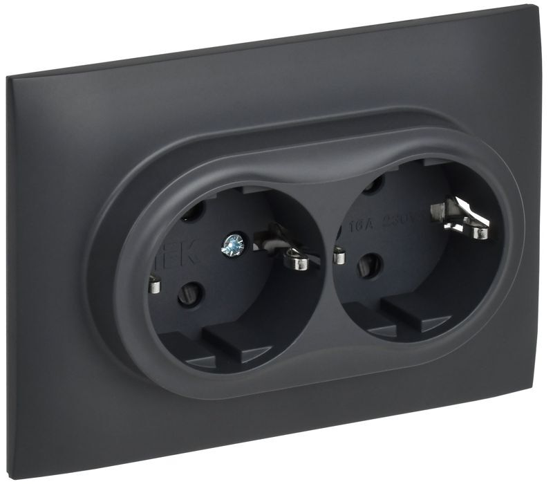 Розетка 2-м SKANDY 16А с заземл. защ. шторки в сборе SK-R07T титан IEK SK-R24-16-K48-F