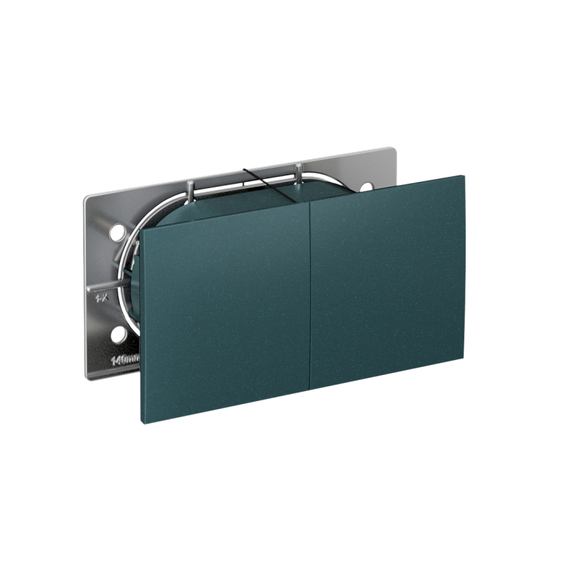 Розетка двойная в сборе Systeme Electric (ранее Schneider Electric) серии AtlasDesign в цвете изумруд с заземлением и шторками, со сдвижными крышками подходит для сетей 250 В, на ток 16 А. Заземляющий контакт обеспечивает дополнительную защиту от удара электрическим током. Специальная монтажная коробка входит в комплект. При закрытых крышках розетка смотрится очень стильно и практически незаметна в интерьере. Это самая плоская розетка в своем сегменте – она практически сливается со стеной.