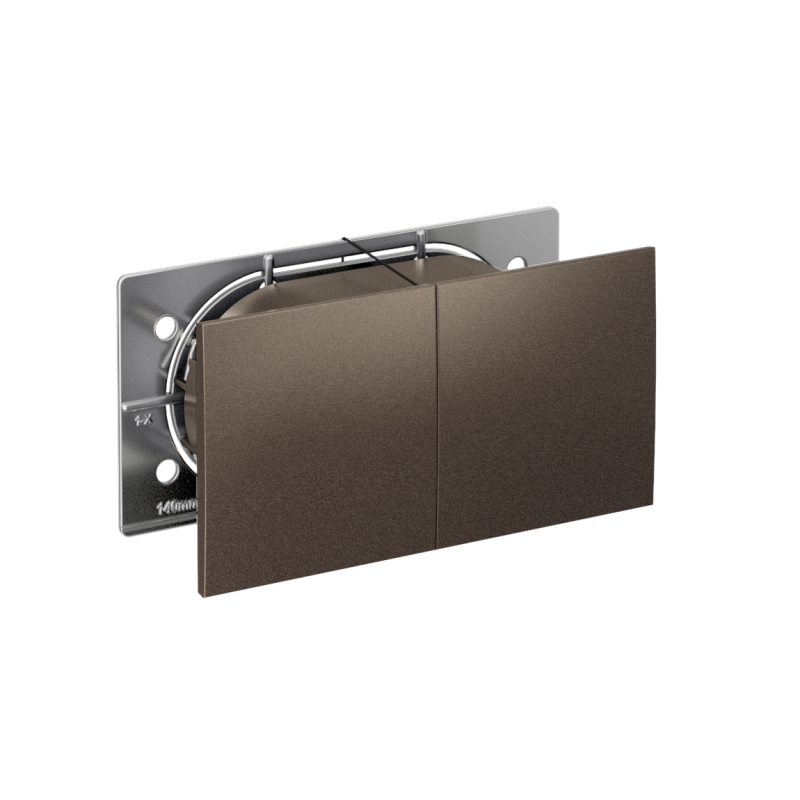 Розетка двойная в сборе Systeme Electric (ранее Schneider Electric) серии AtlasDesign в цвете мокко с заземлением и шторками, со сдвижными крышками подходит для сетей 250 В, на ток 16 А. Заземляющий контакт обеспечивает дополнительную защиту от удара электрическим током. Специальная монтажная коробка входит в комплект. При закрытых крышках розетка смотрится очень стильно и практически незаметна в интерьере. Это самая плоская розетка в своем сегменте – она практически сливается со стеной.