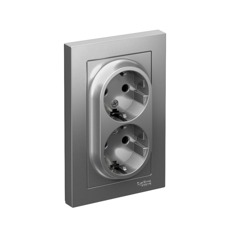 Розетка двойная в сборе Systeme Electric (ранее Schneider Electric) серии AtlasDesign в цвете сталь с заземлением и шторками подходит для сетей 250 В, на ток 16 А. Заземляющий контакт обеспечивает дополнительную защиту от удара электрическим током. Лицевые детали из качественного ABS-пластика, устойчивого к царапинам и УФ-излучению. Двойная розетка позволяет подключить два устройства в одном месте. Изделие поставляется в комплекте с рамкой того же цвета.