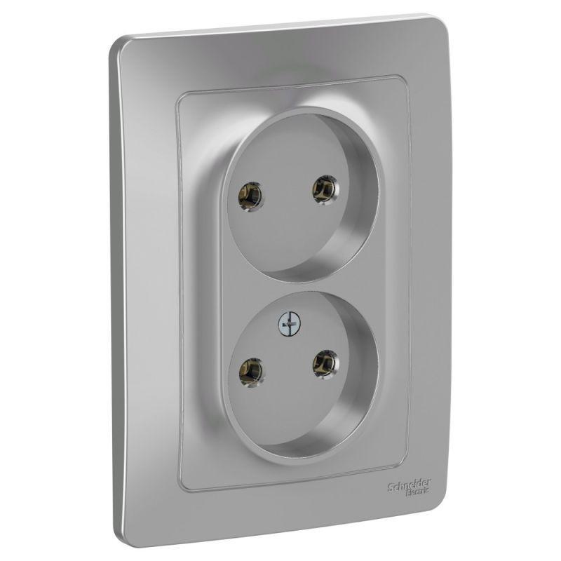 Розетка 2-м СП Blanca 16А IP20 250В без заземл. без защ. шторок алюм. SE BLNRS000023