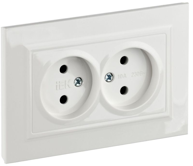 Розетка 2-м СП BRITE РСш12-2-БрБ 10А в сборе без заземл. защ. шторки бел. IEK BR-R23-10-K01-F