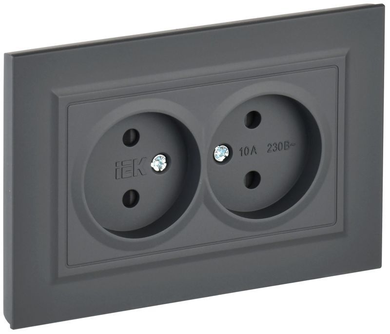 Розетка 2-м СП BRITE РСш12-2-БрГ 10А в сборе без заземл. защ. шторки графит IEK BR-R23-10-K53-F