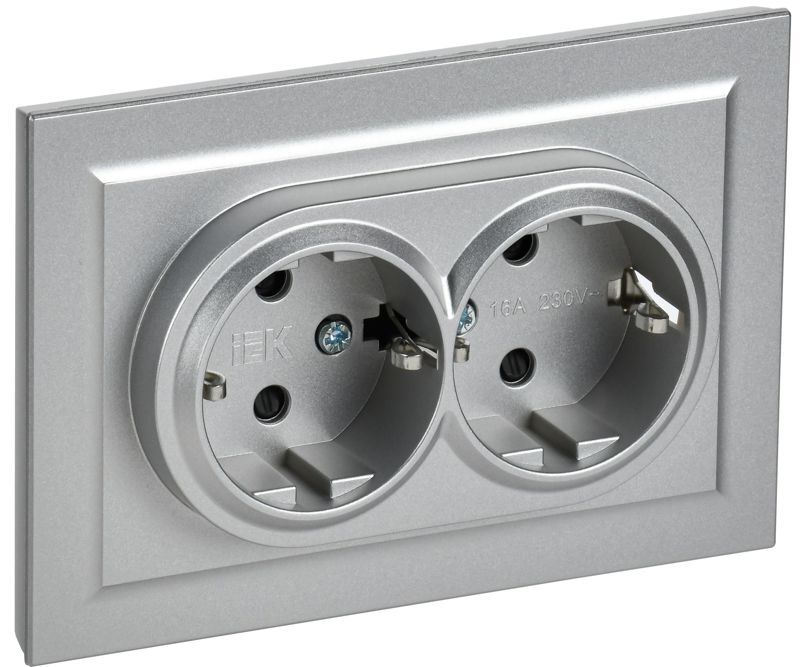 Розетка 2-м СП BRITE РСш12-3-БрА 16А в сборе с заземл. защ. шторки алюм. IEK BR-R24-16-K47-F