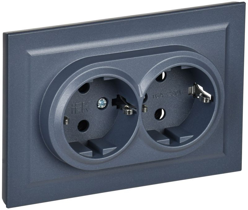 Розетка 2-м СП BRITE РСш12-3-БрМ 16А в сборе с заземл. защ. шторки маренго IEK BR-R24-16-K35-F