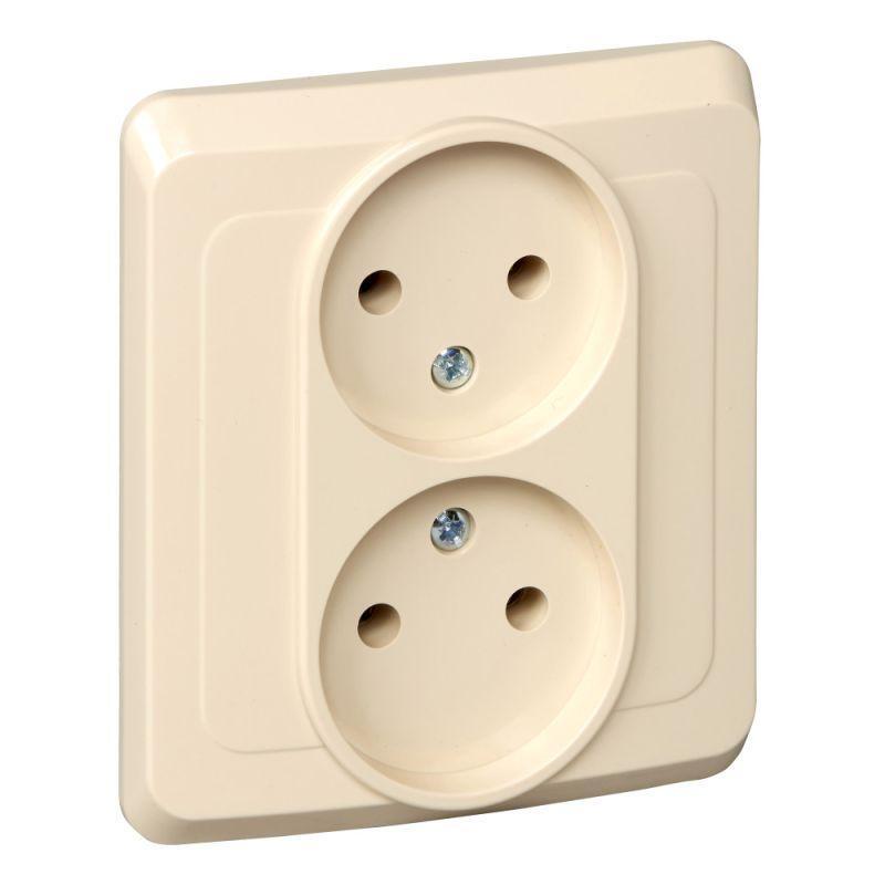 Розетка 2-м СП Этюд 16А IP20 250В без заземл. без защ. шторок крем. SE PC16-005K