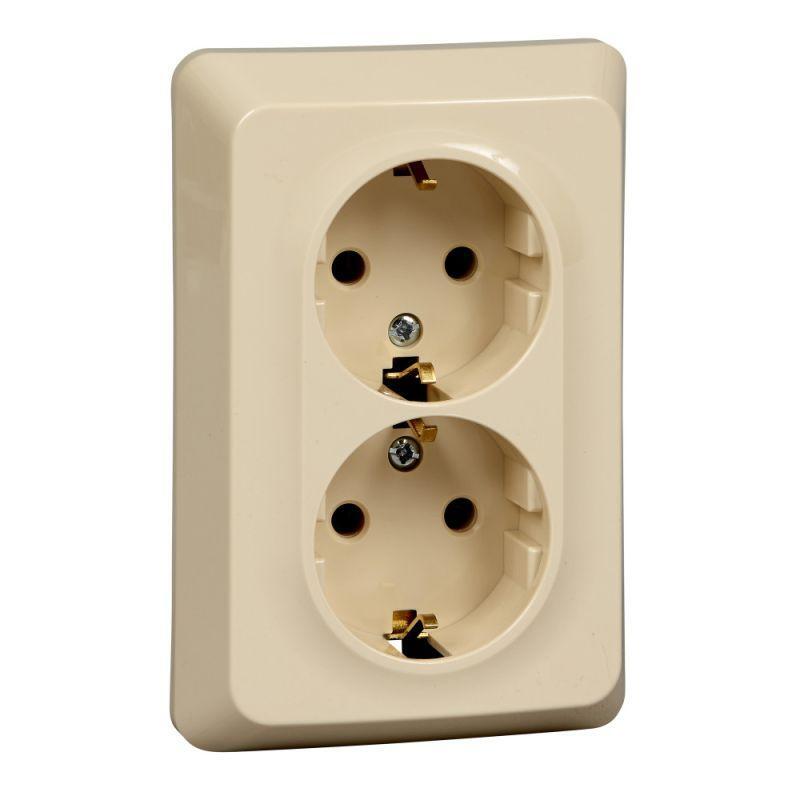 Розетка 2-м СП Этюд 16А IP20 250В с заземл. без защ. шторок крем. SE PC16-107K