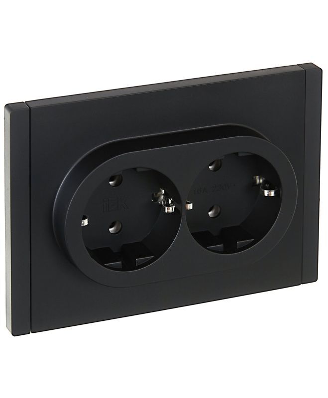 Розетка 2-м СП FORTE&PIANO FP124 16А с заземл. без защ. шторок безвинт. крепл. черн. IEK FP-R21-16-1-K02