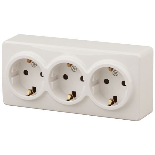 Розетка 3-м ОП Эра Эксперт 11-2208-02 16А IP20 250В 3х2P+E Schuko сл. кость Эра Б0020701