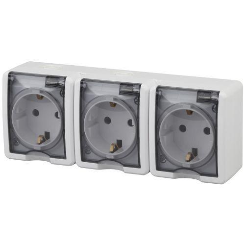 Розетка тройная IP54 3-я серии Эра Эксперт открытой установки цвет белый 11-2405-01. Номинальные характеристики 16А 250В. Устройство выполнено из качественного поликарбоната, оснащёно уникальными винтовыми клеммами ЭКСПЕРТ для максимально качественного зажима кабеля в механизме.
