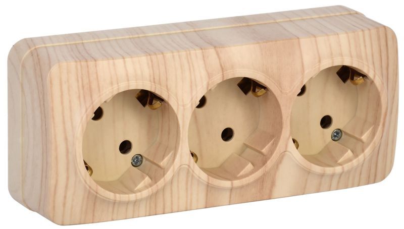 Розетка 3-м ОП GLORY РС23-3-ХС 16А с заземл. сосна IEK ERH31-K34-16