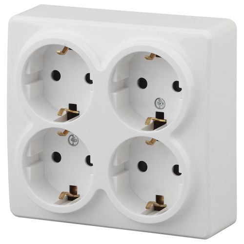 Розетка 4-м ОП Эра Эксперт 11-2211-01 16А IP20 16AX 250В 4х2P+E Schuko защ. шторки бел. Эра Б0020709