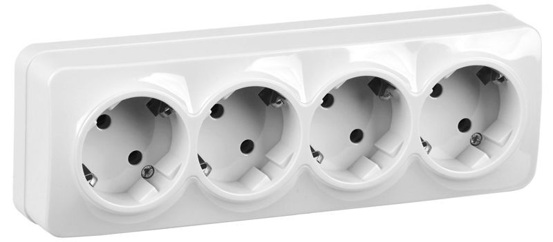 Розетка 4-м ОП GLORY РС24-3-ХБ 16А с заземл. бел. IEK ERH41-K01-16