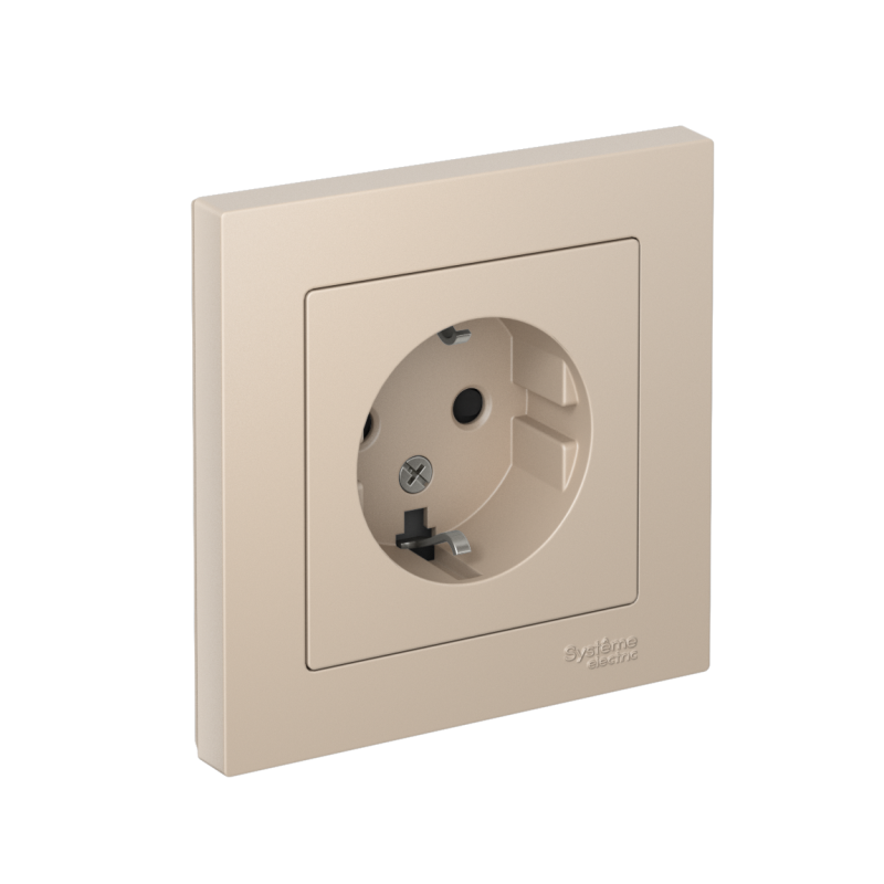 Розетка в сборе Systeme Electric (ранее Schneider Electric) серии AtlasDesign в цвете песочный одинарная с заземлением и без шторок подходит для сетей 250 В, на ток 16 А. Заземляющий контакт обеспечивает дополнительную защиту от удара электрическим током. Лицевые детали из качественного ABS-пластика, устойчивого к царапинам и УФ-излучению. Изделие поставляется в комплекте с рамкой того же цвета.