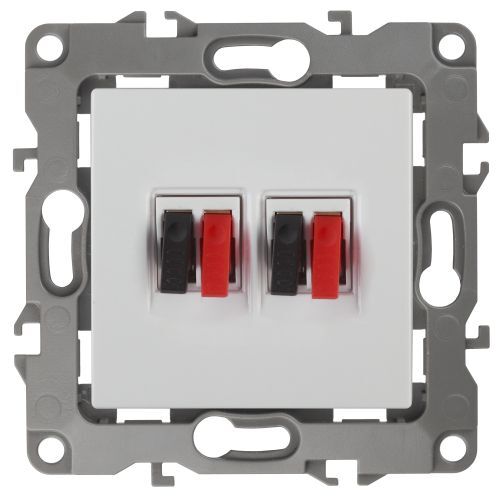 Розетка двойная аудио стерео серии Эра 12 скрытой установки механизм цвет белый 12-3112-01. Сделана из поликарбоната. Монтаж в подрозетник производится и на лапки, и на винты. Рамки приобретаются отдельно. Рамки Эра 12: 1 пост 12-5001-хх, 2 поста 12-5002-хх, 3 поста 12-5003-хх, 4 поста 12-5004-хх, 5 постов 12-5005-хх. Рамки Эра 12 Сатин: 1 пост 12-5101-хх, 2 поста 12-5102-хх, 3 поста 12-5103-хх, 4 поста 12-5104-хх, 5 постов - 12-5105-хх (хх - код цвета: 01-белый, 02-слоновая кость, 03-алюминий, 04-шампань, 05-антрацит, 06-чёрный, 07-ольха(белёный дуб-сатин), 08-вишня, 09-дуб, 10-венге, 11-сосна, 21-жёлтый, 22-оранжевый, 23-красный, 24-охра, 25-бордо, 26-лайм, 27-зелёный, 28-голубой, 29-синий).