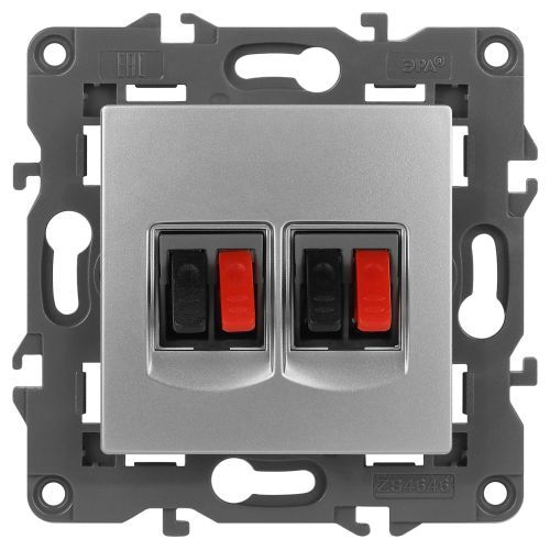 Розетка двойная аудио стерео серии Эра Elegance цвет алюминий 14-3112-03. Рамки приобретаются отдельно. Рамки Эра Elegance ПЛАСТИК: 1 пост 14-5001-хх, 2 поста 14-5002-хх, 3 поста 14-5003-хх, 4 поста 14-5004-хх, 5 постов 14-5005-хх; СТЕКЛО: 1 пост 14-5101-хх, 2 поста 14-5102-хх, 3 поста 14-5103-хх, 4 поста 14-5104-хх; МЕТАЛЛ: 1 пост 14-5201-хх, 2 поста 14-5202-хх, 3 поста 14-5203-хх, 4 поста 14-5204-хх; ДЕРЕВО: 1 пост 14-5301-хх, 2 поста 14-5302-хх, 3 поста 14-5303-хх, 4 поста 14-5304-хх (хх - код цвета: 00-прозрачный, 01-белый, белёный дуб, 02-слоновая кость, 03-алюминий, 04-шампань, 05-чёрный, чёрное дерево, 07-ясень, 09-дуб, 10-венге, 11-клён, 14-медь, 21-жёлтый, 22-оранжевый, 23-красный, 25-бордо, 26-лайм, 27-зелёный, 28-голубой, 29-синий, 30-розовый, 31-мокко, 32-серый, 41-сталь, 42-титан).